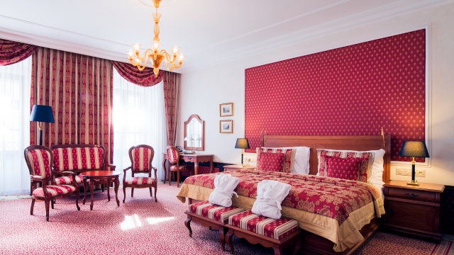 Executive izba je priestranná izba s rozlohou 40-50 m², ideálna pre tých, ktorí hľadajú pohodlie a elegantné zariadenie v historickom štýle. K dispozícii je manželská posteľ alebo oddelené postele, podľa vašich preferencií. Izba je vybavená všetkým potrebným pre váš komfort, vrátane internetového pripojenia a Wi-Fi zdarma, priamej telefónnej linky, TV s plochou obrazovkou, trezoru a vybavenia na prípravu kávy a čaju.Počas pobytu je vám k dispozícii fľaša minerálky